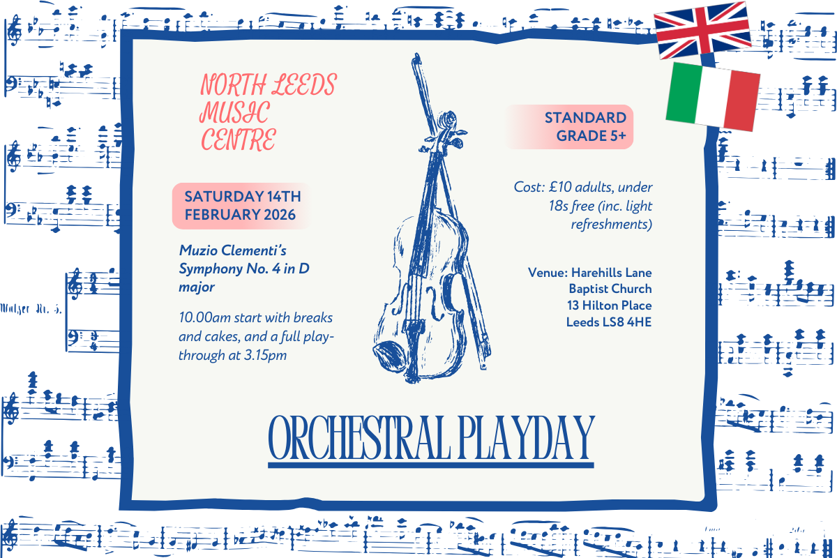 Join us for the @northleedsmusic annual Orchestral Playday this February! A fun and relaxed day of orchestral playing, focusing on Muzio Clementi’s Symphony No. 4 in D major.