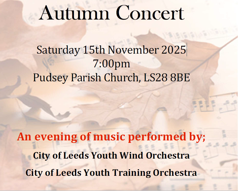 Friday 8th November – CLYM Autumn Concert 7pm at Pudsey Parish Church Featuring: City of Leeds Youth Wind Orchestra City of Leeds... Read More